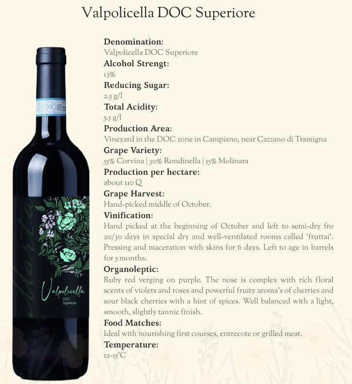 Druer: Corvina 55%, Rondinella 30%, Molinera 15%